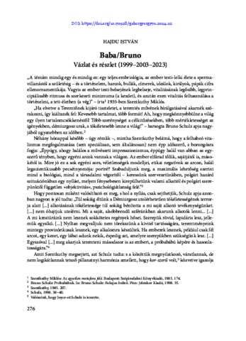 Hajdu, István (2024) Baba/Bruno : Vázlat és részlet (1999–2003–2023). In: A Mindenség megismerése. Országos Rabbiképző - Zsidó Egyetem (ORZSE), Budapest, pp. 276-279. ISBN 9786155494147