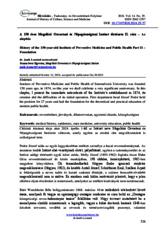 Janik, Leonárd (2024) A 150 éves Megelőző Orvostani és Népegészségtani Intézet története II. rész – Az alapítás. KALEIDOSCOPE: MŰVELŐDÉS- TUDOMÁNY- ÉS ORVOSTÖRTÉNETI FOLYÓIRAT, 14 (29). pp. 526-545. ISSN 2062-2597