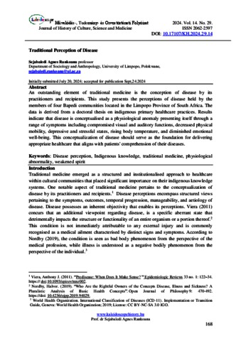 Rankoana, Sejabaledi Agnes (2024) Traditional Perception of Disease. KALEIDOSCOPE: MŰVELŐDÉS- TUDOMÁNY- ÉS ORVOSTÖRTÉNETI FOLYÓIRAT, 14 (29). pp. 168-175. ISSN 2062-2597