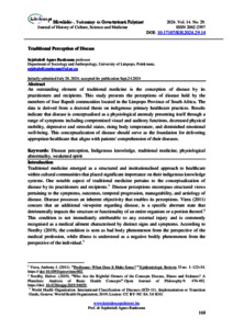 | Uncontrolled Keywords: | Disease perception, Indigenous knowledge, traditional medicine, physiological abnormality, weakened spirit |