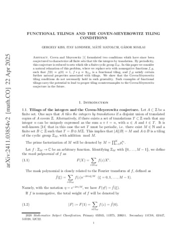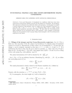 Kiss, Gergely and Itay, Londner and Matolcsi, Máté and Somlai, Gábor (2025) Functional tilings and the Coven-Meyerowitz tiling conditions. DISCRETE ANALYSIS. ISSN 2397-3129 (In Press)