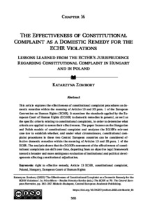 This article explores the effectiveness of constitutional complaint procedures as domestic remedies within the meaning of Articles 13 and 35 para. 1 of the European Convention on Human Rights (ECHR). It examines the standards applied by the European Court of Human Rights (ECtHR) to domestic remedies in general, as well as the specific criteria relating to constitutional complaints, in order to determine what criteria are applied to assess their effectiveness. The paper focuses on the Hungarian and Polish models of constitutional complaint and analyzes the ECtHR’s relevant case-law to establish whether, and under what circumstances, constitutional complaint procedures in these two Central European countries can be considered effective domestic remedies within the meaning of Articles 13 and 35 para. 1 of the ECHR. The analysis shows that the ECtHR’s assessment of the effectiveness of constitutional complaints can shift over time, departing from an objective legal framework toward a broader and more ambiguous evaluation of institutional and political developments affecting constitutional adjudication.