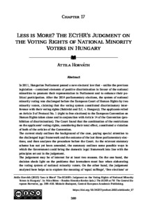 Less is More? The ECtHR’s Judgment on the Voting Rights of National Minority Voters in Hungary
