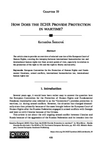 Šmigová, Katarína (2025) How Does the ECHR Provide Protection in wartime? In: The ECHR at 70: The Central European Narrative. Studies Of The Central European Professors’ Network . Central European Academic Publishing, Miskolc - Budapest, pp. 435-453. ISBN 978-615-6474-87-2 (print) 978-615-6474-88-9 (pdf) 978-615-6474-89-6 (epub)