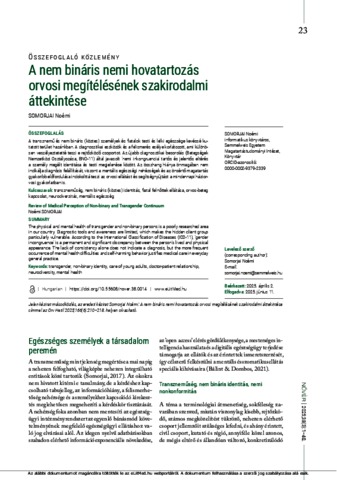 Somorjai, Noémi (2025) A nem bináris nemi hovatartozás orvosi megítélésének szakirodalmi áttekintése = Review of Medical Perception of Non-binary and Transgender Continuum. NŐVÉR, 38 (3). pp. 23-33. ISSN 0864-7003