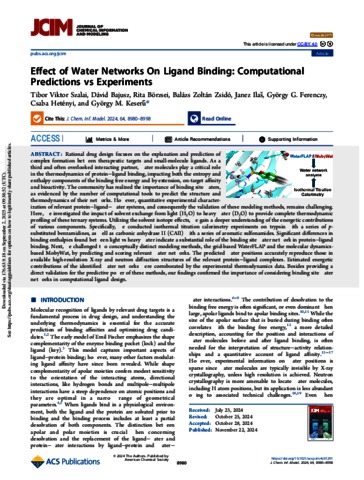 Szalai, Tibor Viktor and Bajusz, Dávid and Börzsei, Rita and Zsidó, Balázs Zoltán and Ilaš, Janez and Ferenczy, György and Hetényi, Csaba and Keserű, György Miklós (2024) Effect of Water Networks On Ligand Binding: Computational Predictions vs Experiments. JOURNAL OF CHEMICAL INFORMATION AND MODELING, 64 (23). pp. 8980-8998. ISSN 1549-9596