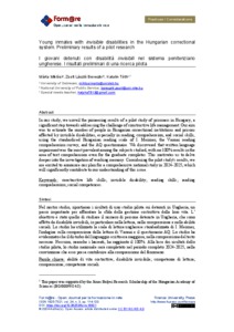 In our study, we unveil the pioneering results of a pilot study of prisoners in Hungary, a significant step towards addressing the challenge of constructive life management. Our aim was to estimate the number of people in Hungarian correctional institutions and prisons affected by invisible disabilities, especially in reading, comprehension, and social skills, using the standardised Hungarian reading scale of I. Meixner, the Vannai reading comprehension survey, and the AQ questionnaire. We discovered that written language impairment was the most prevalent among the subjects studied, with no 100% results in the area of text comprehension even for the graduate completer. This motivates us to delve deeper into the investigation of working memory. Considering the pilot study's results, we are excited to announce our plan for a comprehensive national study in 2024-2025, which will significantly contribute to our understanding of this issue. | Nel nostro studio, riportiamo i risultati di uno studio pilota sui detenuti in Ungheria, un passo importante per affrontare la sfida della gestione costruttiva della loro vita. L’ obiettivo è stato quello di studiare il numero di persone detenute in Ungheria, che sono affette da disabilità invisibili, in particolare nella lettura, nella comprensione e nelle abilità sociali. Lo studio ha utilizzato la scala di lettura ungherese standardizzata di I. Meixner, l'indagine sulla comprensione della lettura di Vannai e il questionario AQ. Lo studio ha evidenziato che il disturbo del linguaggio scritto era maggiore, nella comprensione del testo nessuno. Nessuno, neanche i laureati, ha raggiunto il 100%. Alla luce dei risultati dello studio pilota, lo studio nazionale sarà completato nel periodo completo 2024-2025, nella convinzione che esso possa contribuire alla comprensione del fenomeno.