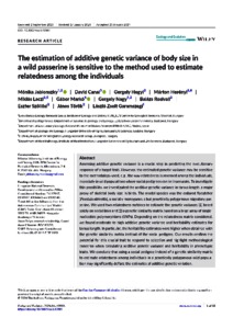 The estimation of additive genetic variance of body size in a wild passerine is sensitive to the method used to estimate relatedness among the individuals_OCR.pdf - Published Version Available under License Creative Commons Attribution. Download (10MB) | Preview |