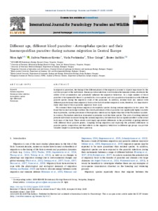 In migratory passerines, the timing of the different phases of the migratory journey is of great importance for the survival prospect of the individuals. Haemosporidian infections could weaken the immune system, decelerate the ability of fat accumulation and potentially influence the migratory behaviour. As a large number of blood parasites is host-generalist there is a potential for cross-species and cross-population transmission with different parasite species during the migratory route of the passerines. In addition, resident birds also interact with different parasite fauna when migratory birds arrive back from their migratory route, therefore, it is important to study what kind of blood parasites migratory birds carry. We screened three long-distant migratory Acrocephalus species during autumn migration in two years. We found that in reed and sedge warblers the overall prevalence of blood parasites was significantly higher in adults than in juveniles, and the prevalence of Haemoproteus infections was higher than that of the Plasmodium in adults. In contrast, Plasmodium infections dominated in juveniles in all the three species. The odds of catching infected juvenile individuals increased during the autumn migration, but infections had no significant effect on the actual body mass of the birds. These results could imply age-related differences in the probability of getting infected with different blood parasite genera. Sampling during migration and exploring the potential differences in parasite species composition and their effects on the migratory behaviour in different age groups can provide valuable insight in answering these questions.