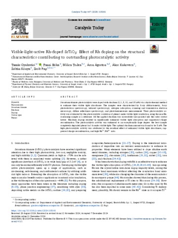 Gyulavári, Tamás and Bóka, Fanni and Todea, Milica and Ágoston, Áron and Kukovecz, Ákos and Kónya, Zoltán and Pap, Zsolt (2025) Visible-light-active Rh-doped SrTiO3: Effect of Rh doping on the structural characteristics contributing to outstanding photocatalytic activity. CATALYSIS TODAY, 447. ISSN 0920-5861