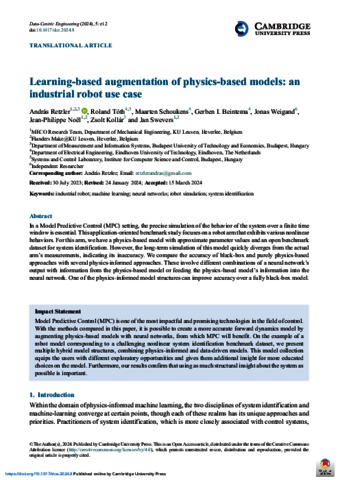 Retzler, András and Tóth, Roland and Schoukens, Maarten and Beintema, Gerben I. and Weigand, Jonas and Noël, Jean-Philippe and Kollár, Zsolt and Swevers, Jan (2024) Learning-based augmentation of physics-based models: an industrial robot use case. DATA-CENTRIC ENGINEERING, 5. No.-e12. ISSN 2632-6736