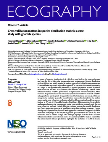 Huang, Hongwei and Zhang, Zhixin and Bede-Fazekas, Ákos and Mammola, Stefano and Gu, Jiqi and Zhou, Jinxin and Qu, Junmei and Lin, Qiang (2025) Cross‐validation matters in species distribution models: a case study with goatfish species. ECOGRAPHY, 2025 (1). ISSN 0906-7590