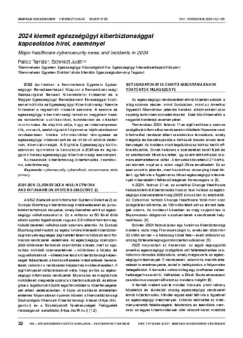 Palicz, Tamás and Schmidt, Judit (2025) 2024 kiemelt egészségügyi kiberbiztonsággal kapcsolatos hírei, eseményei. IME, 24 (KSZ 1). pp. 32-34. ISSN 1588-6387
