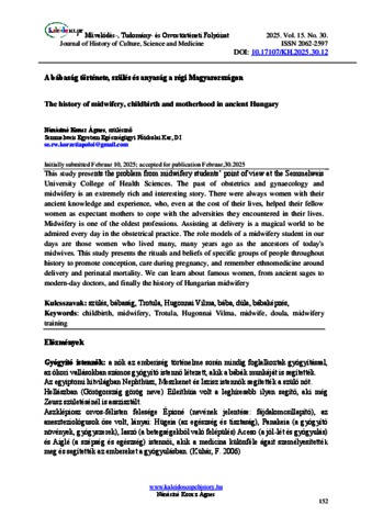 Nánásiné, Koncz Ágnes (2025) A bábaság története, szülés és anyaság a régi Magyarországon = The history of midwifery, childbirth and motherhood in ancient Hungary. KALEIDOSCOPE: MŰVELŐDÉS- TUDOMÁNY- ÉS ORVOSTÖRTÉNETI FOLYÓIRAT, 15 (30). pp. 152-164. ISSN 2062-2597