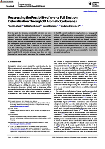 Gao, Yanhong and Szathmári, Balázs and Buzsáki, Dániel and Kelemen, Zsolt (2025) Reassessing the Possibility of π–σ–π Full Electron Delocalization Through 3D Aromatic Carboranes. CHEMISTRY-A EUROPEAN JOURNAL, 31 (41). No.-e202501806. ISSN 0947-6539