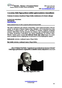 | Uncontrolled Keywords: | centenárium, nyelőcsősebészet, Kulka Frigyes |