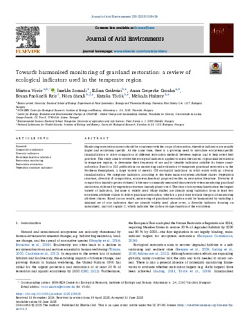 Vörös Márton, Vörös and Somodi, Imelda and Csákvári, Edina and Csonka, Anna Cseperke and Reis Paolinelli, Bruna and Sáradi, Nóra and Török, Katalin and Halassy, Melinda (2025) Towards harmonised monitoring of grassland restoration: a review of ecological indicators used in the temperate region. JOURNAL OF ARID ENVIRONMENTS, 230. No.-105426. ISSN 0140-1963 (In Press)