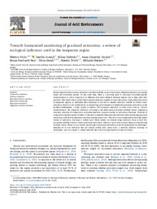 Monitoring restoration success should be consistent with the scope of restoration, therefore indicators are usually target and ecosystem specific. At the same time, there is a growing need to introduce ecosystem-specific standardisation to allow comparison of different restoration methods between regions and to help select best practices. This study aims to review the ecological indicators applied to assess the success of grassland restoration in temperate regions, to determine their frequency of use and to identify indicators suitable for future standardisation. Based on 322 publications on monitoring and evaluation of temperate grassland restoration in the Northern Hemisphere, a large variety of metrics (85 ecological indicators in total) exists with no obvious standardisation. We categorise indicators according to the three main ecosystem attribute classes (vegetation structure, diversity & composition, ecosystem function) proposed earlier in restoration literature. Diversity & composition (mainly species richness) is the most commonly measured characteristic when monitoring grassland restoration, followed by vegetation structure (mainly plant cover). The class of ecosystem function has the largest variety of indicators, but none is widely used. Many studies are already using indicators from at least two ecosystem attribute classes to follow grassland restoration, which is a good start towards the goal of monitoring all three classes. Based on our results, monitoring of grassland restoration could be harmonised by including a minimal set of core indicators that are already widely used: plant cover, a diversity indicator focusing on naturalness, and soil organic C, which indicates the carbon storage function of the ecosystem.