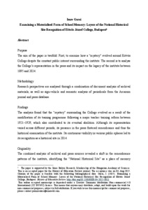 Purpose The aim of the paper is twofold. First, to examine how a “mystery” evolved around Eötvös College despite the constant public interest surrounding the institute. The second is to analyse the College’s representation in the press and its impact on the legacy of the institute between 1895 and 2024. Methodology Research perspectives are analysed through a combination of document analysis of archival materials, as well as sign-vehicle and semantic analysis of periodicals from the Arcanum journal and press database. Findings The analysis found that the “mystery” surrounding the College evolved as a result of the modification of its training programme following a major teacher training reform between 1921–1929, which also contributed to its eventual abolition. Although its representation varied across different periods, its presence in the press fostered remembrance and thus the historical examination of the institute. Its continuous visibility in various public spheres led to its recognition as a historical site in 2014. Originality The combined analysis of archival and press sources revealed a shift in the remembrance patterns of the institute, identifying the “National Historical Site” as a place of memory incorporating three layers of meaning. One of these layers is the silence which shrouded the College after the deprofessionalization of its training in 1950.
