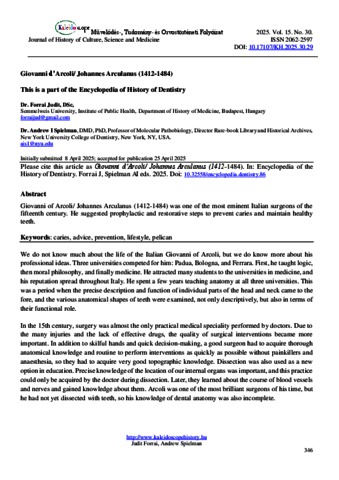 Forrai, Judit and Spielman, Andrew I. (2025) Giovanni d’Arcoli/ Johannes Arculanus (1412-1484). KALEIDOSCOPE: MŰVELŐDÉS- TUDOMÁNY- ÉS ORVOSTÖRTÉNETI FOLYÓIRAT, 15 (30). pp. 346-349. ISSN 2062-2597