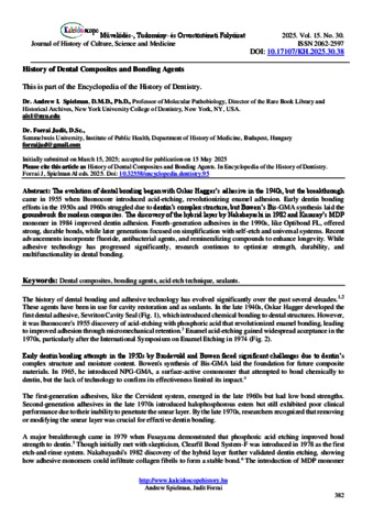 Spielman, Andrew I. and Forrai, Judit (2025) History of Dental Composites and Bonding Agents. KALEIDOSCOPE: MŰVELŐDÉS- TUDOMÁNY- ÉS ORVOSTÖRTÉNETI FOLYÓIRAT, 15 (30). pp. 382-384. ISSN 2062-2597