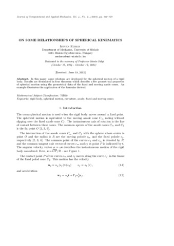 Ecsedi, István (2003) On some relationships of shperical kinematics. JOURNAL OF COMPUTATIONAL AND APPLIED MECHANICS, 4 (2). pp. 119-127. ISSN 1586-2070