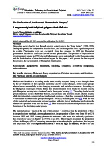 Magos, Gergely (2023) The Confiscation of Jewish-owned Pharmacies in Hungary. KALEIDOSCOPE: MŰVELŐDÉS- TUDOMÁNY- ÉS ORVOSTÖRTÉNETI FOLYÓIRAT, 13 (27). pp. 310-320. ISSN 2062-2597