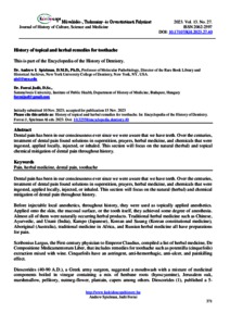 Dental pain has been in our consciousness ever since we were aware that we have teeth. Over the centuries, treatment of dental pain found solutions in superstition, prayers, herbal medicine, and chemicals that were ingested, applied locally, injected, or inhaled. This section will focus on the natural (herbal) and topical chemical mitigation of dental pain throughout history.