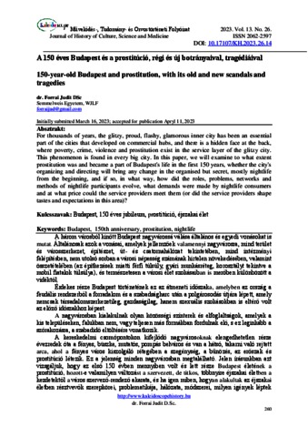 Forrai, Judit (2023) A 150 éves Budapest és a prostitúció, régi és új botrányaival, tragédiáival. KALEIDOSCOPE: MŰVELŐDÉS- TUDOMÁNY- ÉS ORVOSTÖRTÉNETI FOLYÓIRAT, 13 (26). pp. 260-279. ISSN 2062-2597