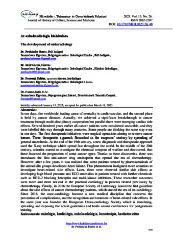 Prohászka, Bence Imre and Gráf, László and Pozsonyi, Zoltán and Forrai, Judit (2023) Az onkokardiológia kialakulása. KALEIDOSCOPE: MŰVELŐDÉS- TUDOMÁNY- ÉS ORVOSTÖRTÉNETI FOLYÓIRAT, 13 (26). pp. 519-526. ISSN 2062-2597