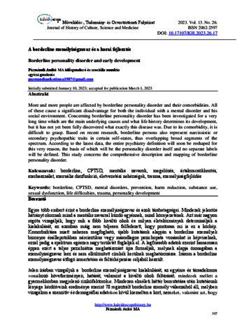 Pázmándi, Anikó (2023) A borderline személyiségzavar és a korai fejlesztés. KALEIDOSCOPE: MŰVELŐDÉS- TUDOMÁNY- ÉS ORVOSTÖRTÉNETI FOLYÓIRAT, 13 (26). pp. 307-344. ISSN 2062-2597