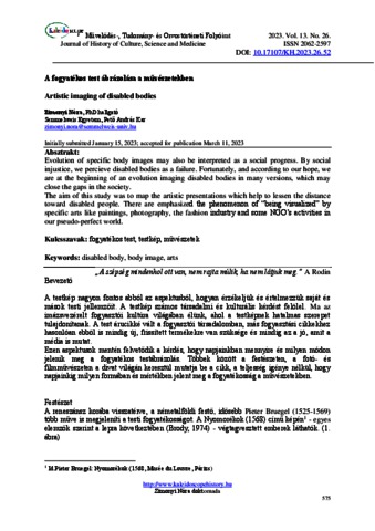Zimonyi, Nóra (2023) A fogyatékos test ábrázolása a művészetekben. KALEIDOSCOPE: MŰVELŐDÉS- TUDOMÁNY- ÉS ORVOSTÖRTÉNETI FOLYÓIRAT, 13 (26). pp. 575-585. ISSN 2062-2597