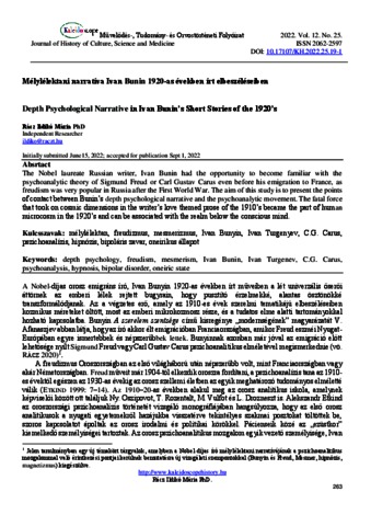 Rácz, Ildikó Mária (2022) Mélylélektani narratíva Ivan Bunin 1920-as években írt elbeszéléseiben. KALEIDOSCOPE: MŰVELŐDÉS- TUDOMÁNY- ÉS ORVOSTÖRTÉNETI FOLYÓIRAT, 12 (25). pp. 263-271. ISSN 2062-2597