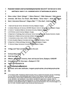 Juhász, Dénes and Várhegyi, Martin and Rakovics, Márton and Szilveszter, Bálint and Jermendy, Ádám Levente and Dósa, Edit and Straub, Éva and Merkely, Béla and Arányi, Tamás and Apor, Astrid and Szüts, Dávid and Manouras, Aristomenis and Bäck, Magnus and Szeri, Flóra and Nagy, Anikó Ilona (2025) Association between plasma phosphate/pyrophosphate ratio and CT derived aortic valve calcification score in an unselected cohort of cardiovascular patients. European Heart Journal - Cardiovascular Imaging. ISSN 2047-2404 (In Press)