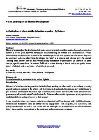 Abusamak, Asmaa (2022) Value, and Impact on Human Development. KALEIDOSCOPE: MŰVELŐDÉS- TUDOMÁNY- ÉS ORVOSTÖRTÉNETI FOLYÓIRAT, 12 (25). pp. 113-128. ISSN 2062-2597