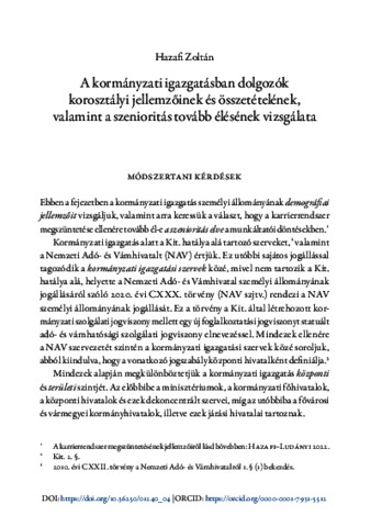 Hazafi, Zoltán (2025) A kormányzati igazgatásban dolgozók korosztályi jellemzőinek és összetételének, valamint a szenioritás tovább élésének vizsgálata. In: Generációkutatás a kormányzati igazgatásban. Ludovika Egyetemi Kiadó, Budapest, pp. 63-110. ISBN 9789636531966; 9789636531973