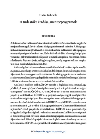 Csóka, Gabriella (2025) A tudástőke átadása, mentorprogramok. In: Generációkutatás a kormányzati igazgatásban. Ludovika Egyetemi Kiadó, Budapest, pp. 111-147. ISBN 9789636531966; 9789636531973