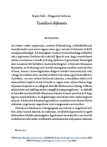 Kajtár, Edit and Magasvári, Adrienn (2025) Tanulás és fejlesztés. In: Generációkutatás a kormányzati igazgatásban. Ludovika Egyetemi Kiadó, Budapest, pp. 203-230. ISBN 9789636531966; 9789636531973