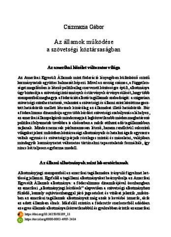 Csizmazia, Gábor (2024) Az államok működése a szövetségi köztársaságban. In: Az Amerikai Egyesült Államok politikai rendszere. Ludovika Egyetemi Kiadó, Budapest, pp. 187-216. ISBN 9789636530464; 9789636530471; 9789636530488
