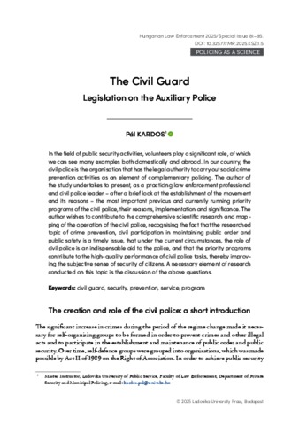Kardos, Pál (2025) The Civil Guard : Legislation on the Auxiliary Police. MAGYAR RENDÉSZET, 25 (Különs). pp. 81-95. ISSN 1586-2895