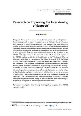 Ray, Bull (2025) Research on Improving the Interviewing of Suspects. MAGYAR RENDÉSZET, 25 (Különs). pp. 97-110. ISSN 1586-2895