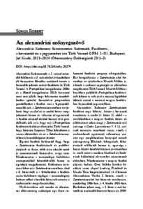 Somos, Róbert (2024) Az alexandriai szőnyegszövő : Alexandriai Kelemen: Sztrómateisz. Szőttesek. Fordította, a bevezetőt és a jegyzeteket írta Tóth Vencel OFM. I–III. Budapest, Jel Kiadó, 2021–2024 (Ókeresztény Örökségünk 23/1–3). MAGYAR FILOZÓFIAI SZEMLE, 68 (4). pp. 164-171. ISSN 0025-0090