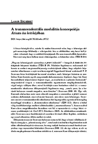 Lamár, Erzsébet (2024) A transzcendentális modalitás koncepciója A tiszta ész kritikájában. MAGYAR FILOZÓFIAI SZEMLE, 68 (3). pp. 169-189. ISSN 0025-0090