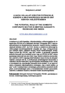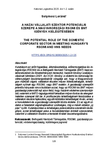Solymosi, Loránd (2025) A hazai vállalati szektor potenciális szerepe a magyarországi RSOMI és BNT igények kielégítésében = The potential role of the domestic corporate sector in meeting Hungary's RSOMI and HNS needs. KATONAI LOGISZTIKA, 33 (1-2). pp. 125-139. ISSN 1588-4228
