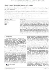 Hajdu, Dávid and Franco, Oier and Sanz-Calle, Markel and Totis, Giovanni and Munoa, Jokin and Stépán, Gábor and Dombóvári, Zoltán (2025) Stable tongues induced by milling tool runout. INTERNATIONAL JOURNAL OF MACHINE TOOLS & MANUFACTURE, 206. No.-104258. ISSN 0890-6955