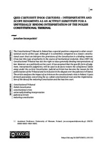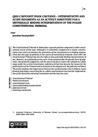 Szczepański, Jarosław (2025) Quis Custodiet Ipsos Custodes : Interpretative and Scope Judgments as an Activist Substitute for a Universally Binding Interpretation of the Polish Constitutional Tribunal. LAW IDENTITY AND VALUES, 5 (1). pp. 195-215. ISSN 2786-2542
