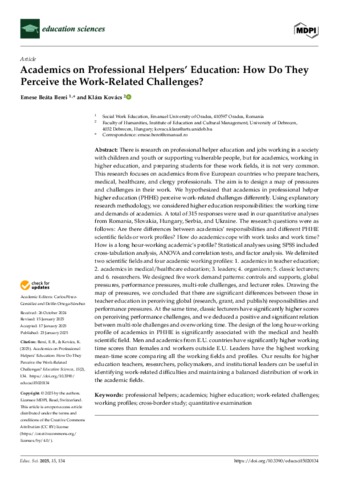 Berei, Emese Beáta and Kovács, Klára (2025) Academics on Professional Helpers’ Education: How Do They Perceive the Work-Related Challenges? Education Sciences, 15 (2). p. 134. ISSN 2227-7102