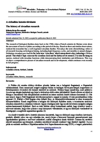 Kálmán, Eszter Éva (2022) A cirkadián kutatás története. KALEIDOSCOPE: MŰVELŐDÉS- TUDOMÁNY- ÉS ORVOSTÖRTÉNETI FOLYÓIRAT, 12 (24). pp. 41-57. ISSN 2062-2597