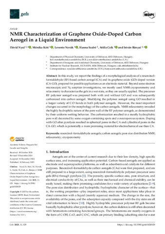 Nyul, Dávid and Kéri, Mónika and Novák, Levente and Szabó, Hanna and Csik, Attila and Bányai, István (2025) NMR Characterization of Graphene Oxide-Doped Carbon Aerogel in a Liquid Environment. GELS, 11 (2). No.-129. ISSN 2310-2861
