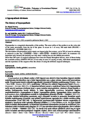 Balogh, Dorottya and Kiss, András Pál (2022) A hypospadiasis története. KALEIDOSCOPE: MŰVELŐDÉS- TUDOMÁNY- ÉS ORVOSTÖRTÉNETI FOLYÓIRAT, 12 (24). pp. 133-137. ISSN 2062-2597